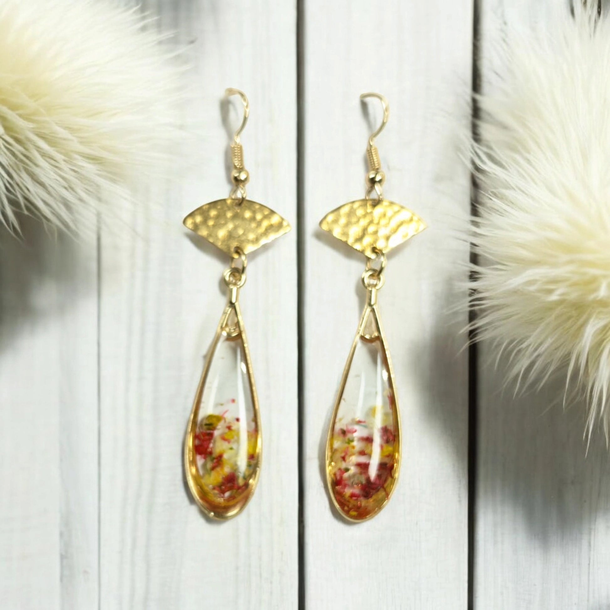 Boucles d'oreilles en résine et fleurs séchées