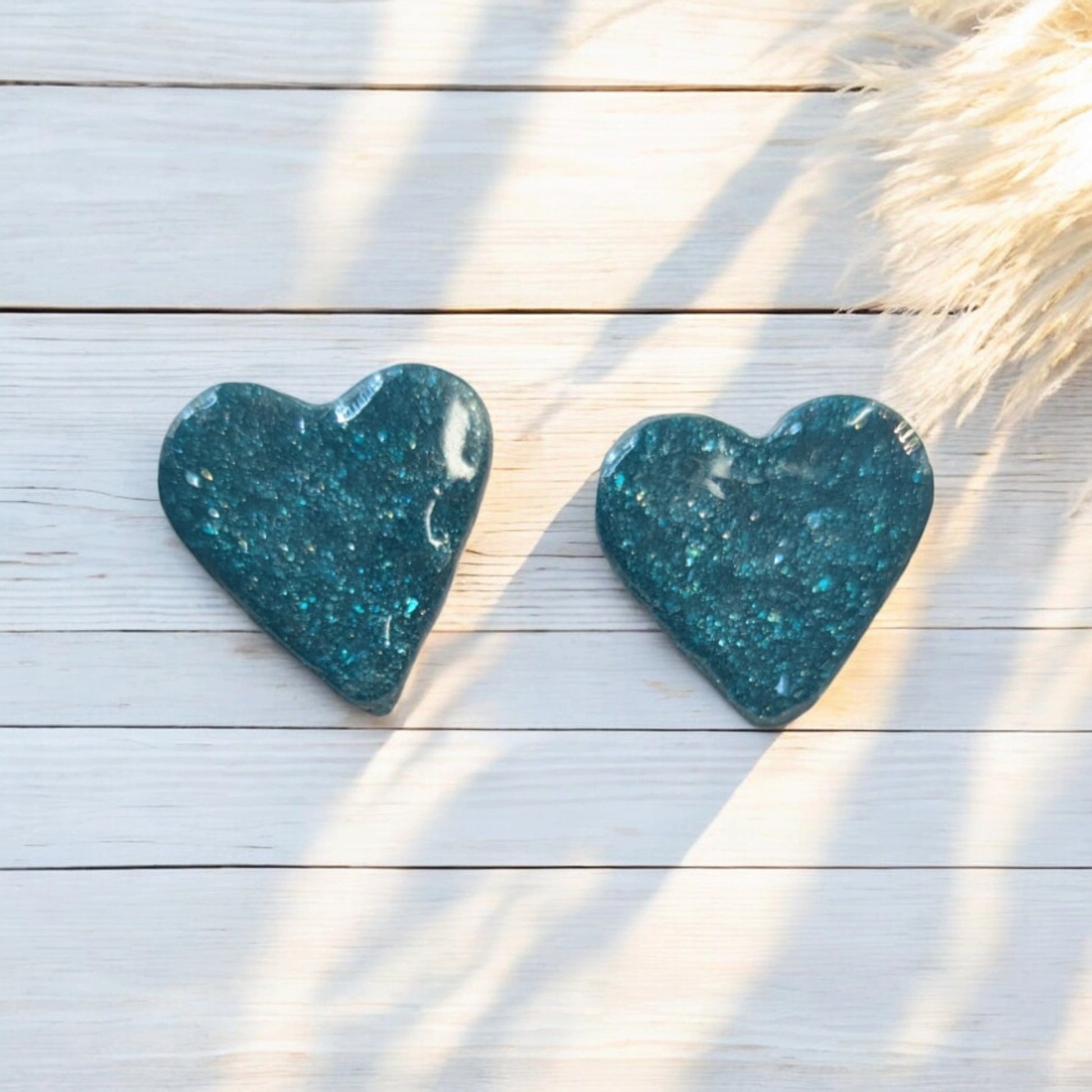 en argile polymère forme cœur bleu/vert foncé pailleté