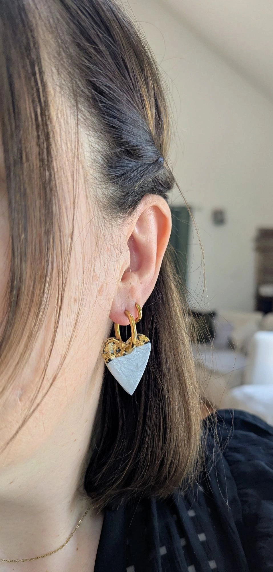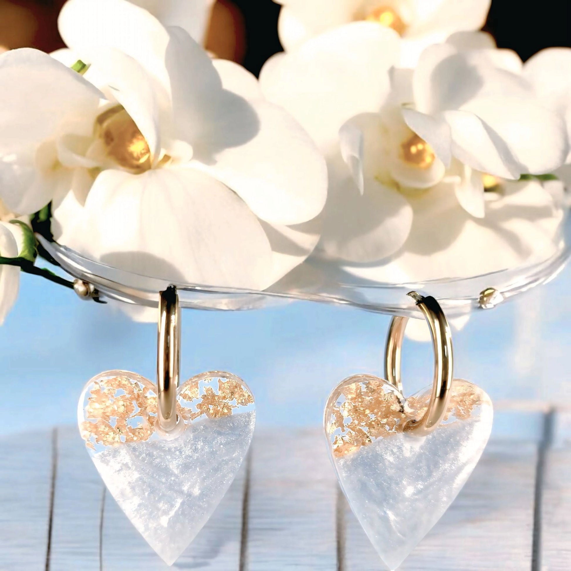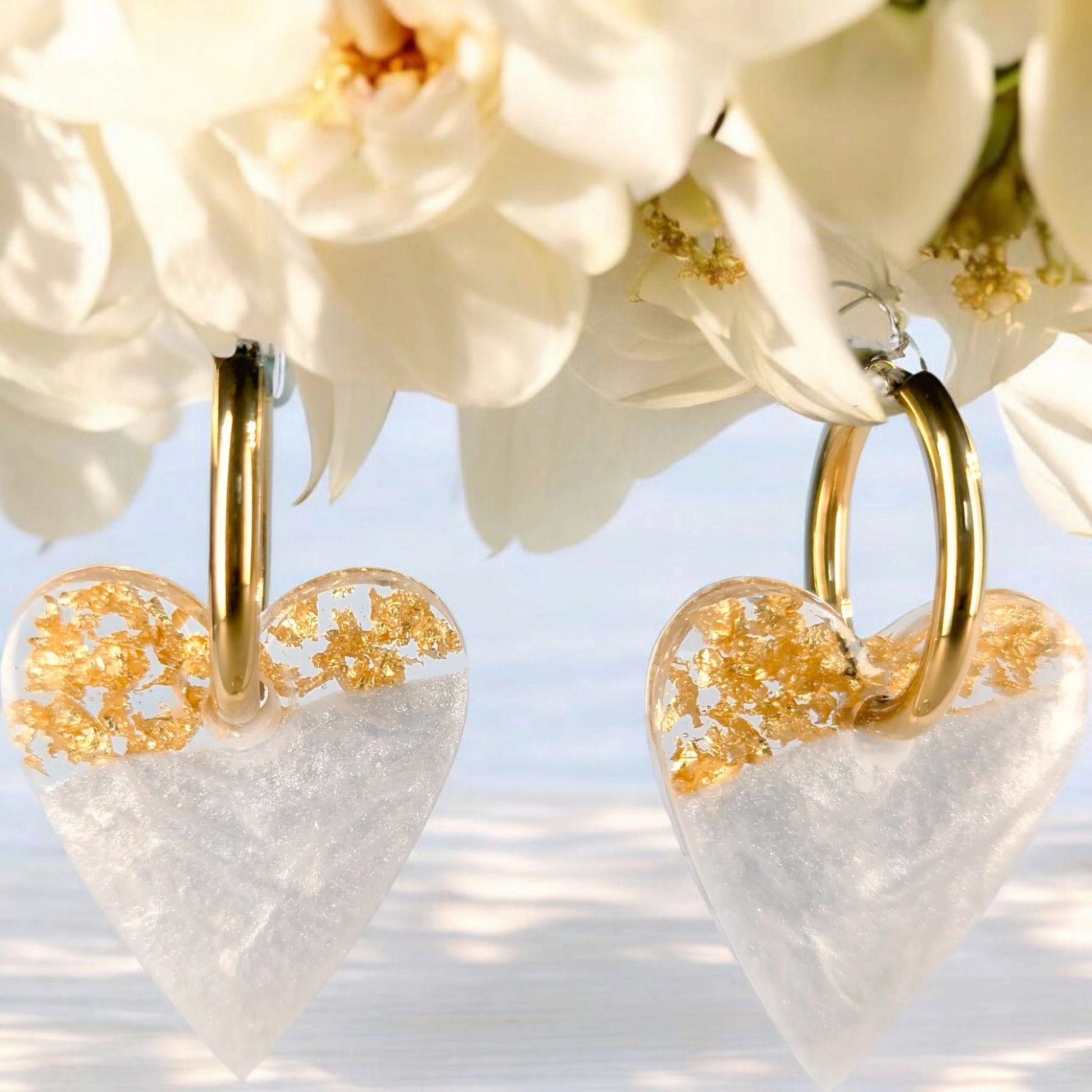 Si vos oreilles pouvaient parler, elles diraient : « C’est exactement ce que j’attendais ! » — car ces boucles en forme de cœur blanc nacré et feuille d’or sont la dose de pep’s (et de glamour) qu’elles attendaient depuis toujours