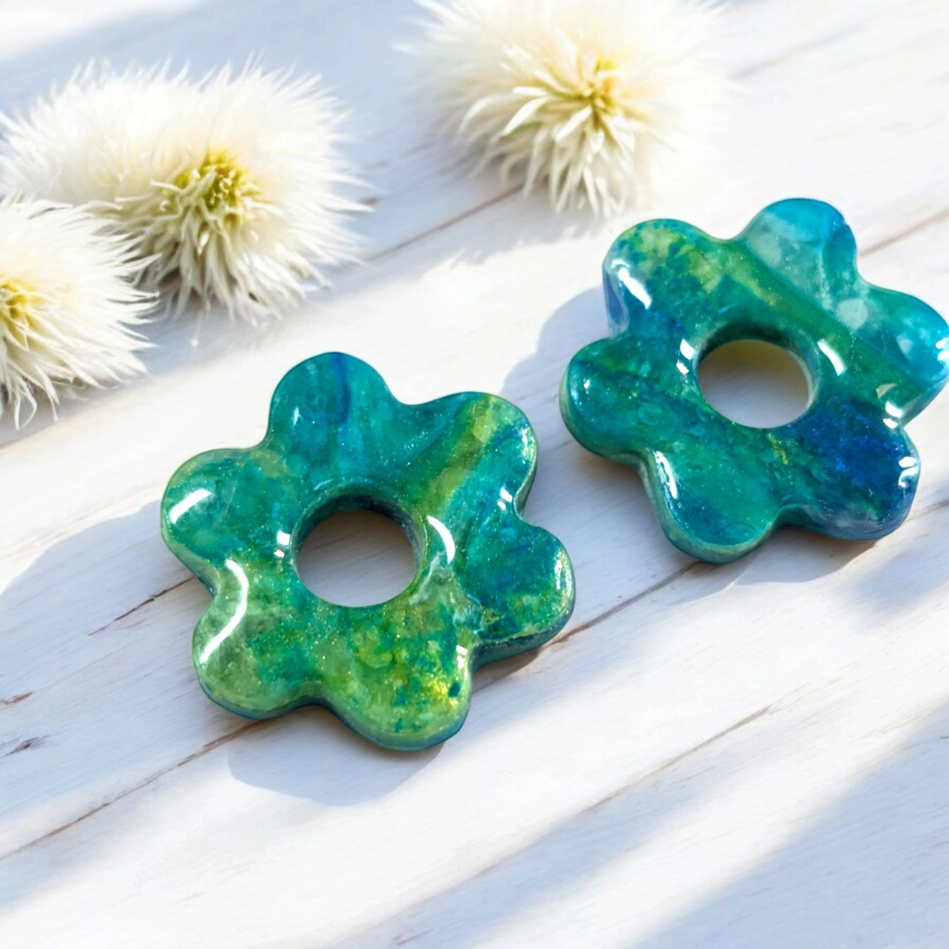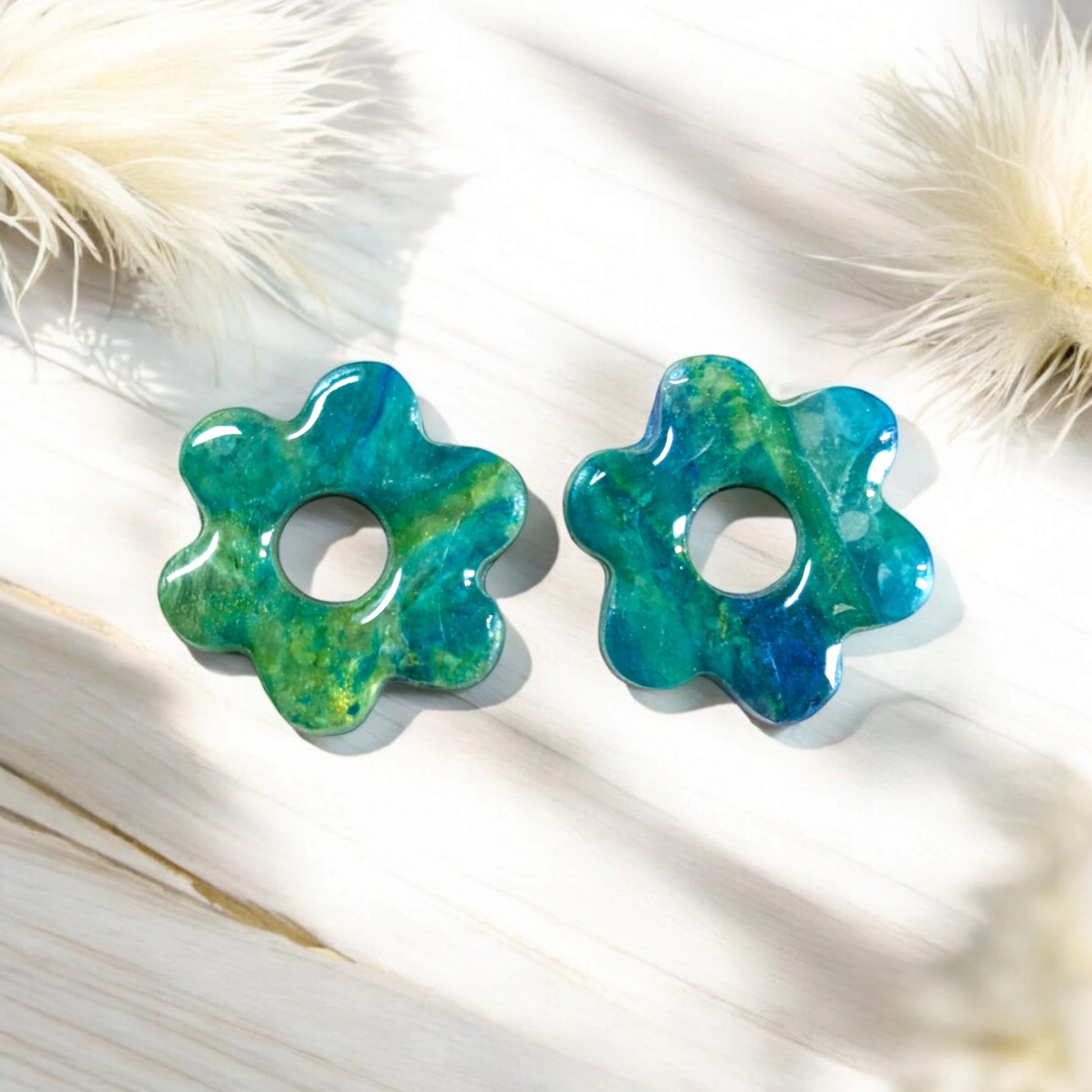 Infinity en Argile polymère effet marbré bleu vert / Glossy