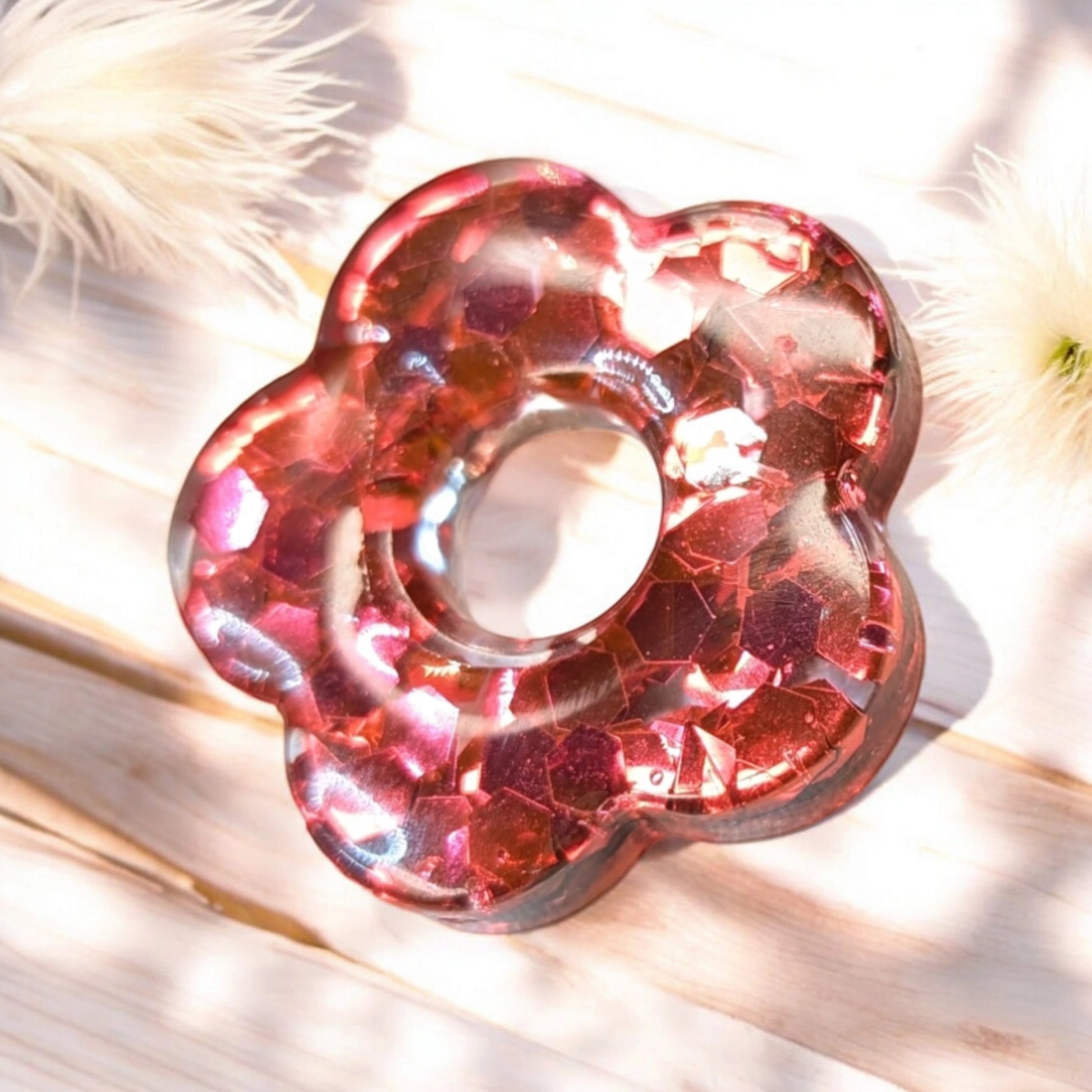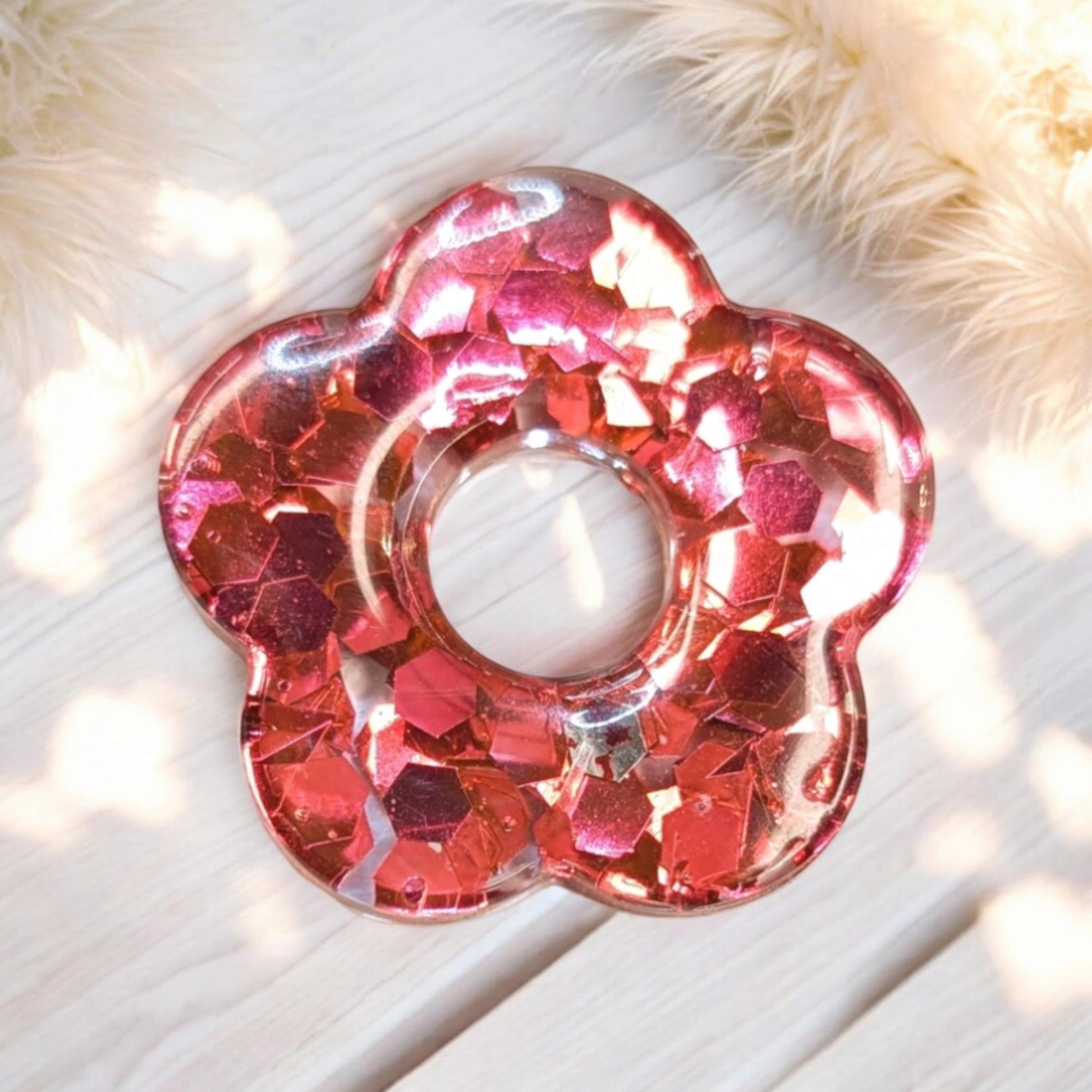 INFINITY en résine transparente et grosses paillettes rouge