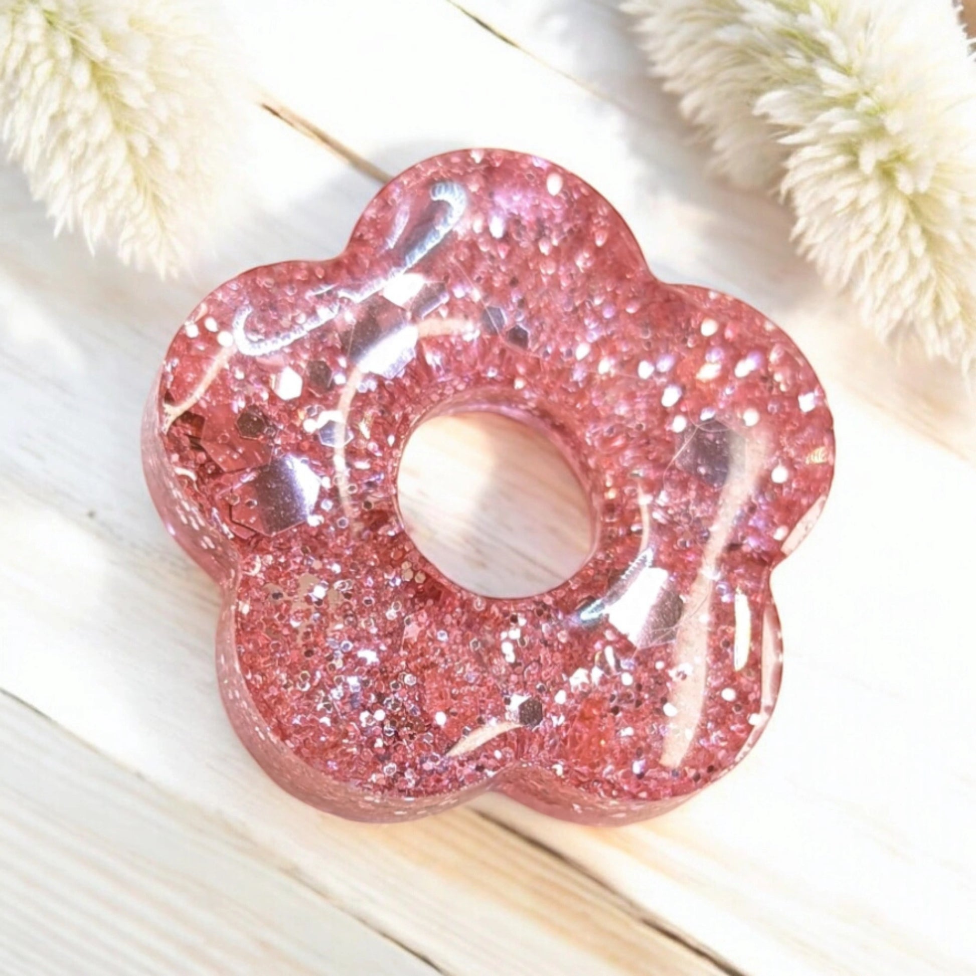 INFINITY en résine transparente multi paillettes rose