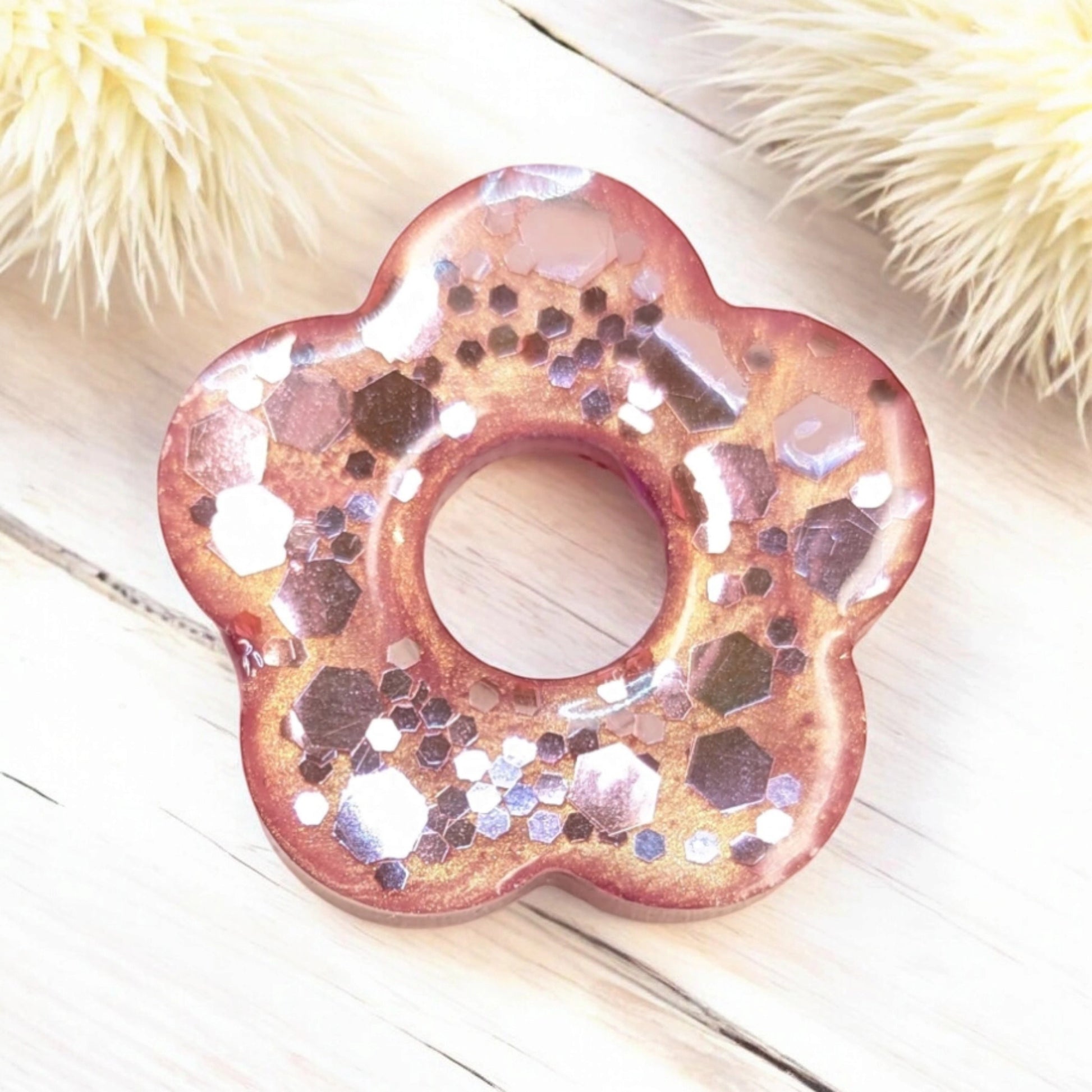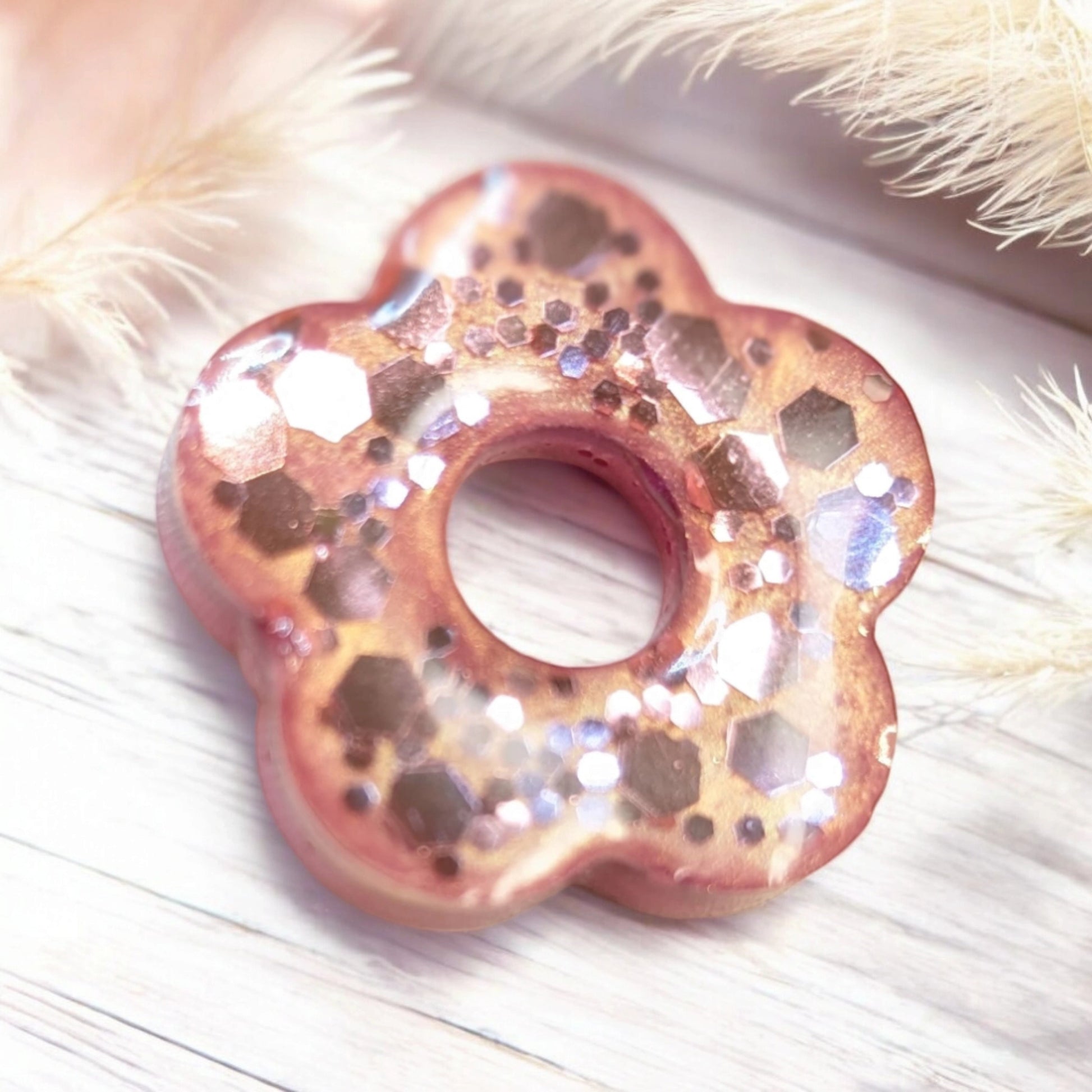 1 coté paillettes rose / 1 coté nacré rose