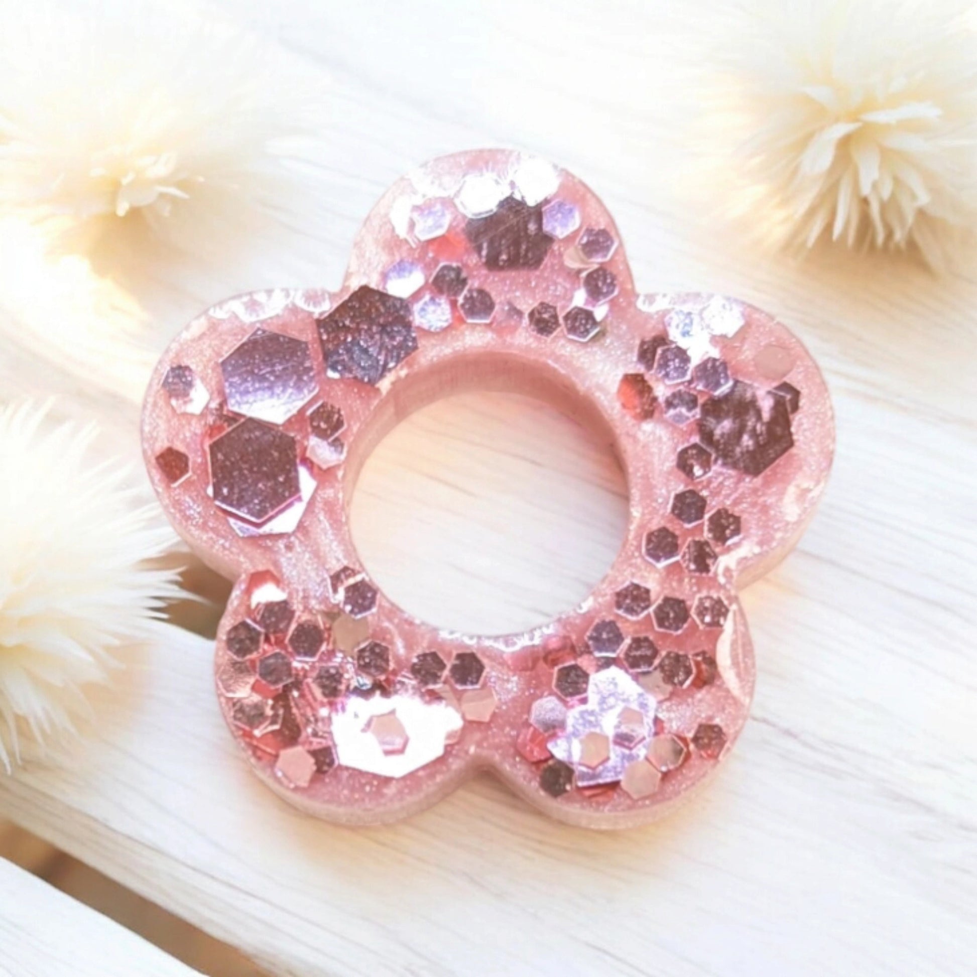 INFINITY SWITCHS (petit format) en résine transparente paillettes rose/nacré rose